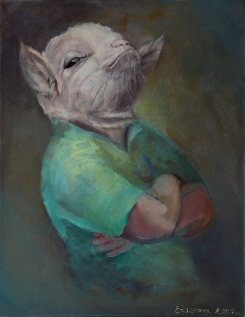 Олександра Єрастова часто використовує магічний сенс числа «13» у своїй творчості, оскільки 13 для неї символізує число переходу, завершеність одного і початок нового циклу. Навіть назва виставки Олександри Єрастової складається із двох серій робіт, кожна з яких налічує 13 картин. У першій зображено симбіоз Людини і Тварини. Друга серія демонструє пояснення сутності світу у метафізичному плані.