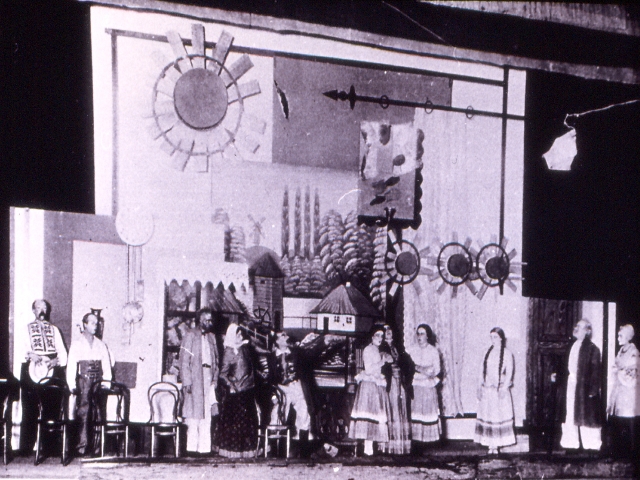Лесь Курбас і театр “Березіль” переїжджають до Харкова з Києва у 1926 році і ставлять перед собою нову мету – творити засобами театру нову українську урбаністичну культуру, представити Харків як столицю України. Найяскравіше це мистецьке завдання проявилося у представлених на виставці в ЄрміловЦентрі спектаклях “Березоля” “Народний Малахій” (1928), “Алло на хвилі 477!” (1929) та “Мина Мазайло” (1929).