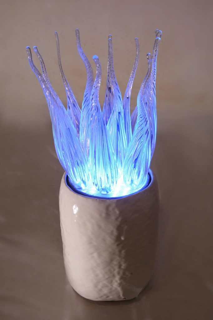 На проекте представлены арт-объекты из художественного стекла и керамики, которые авторы создавали в течение года. Работы со светодиодной подсветкой причудливых форм разнообразных созданий подводного царства.