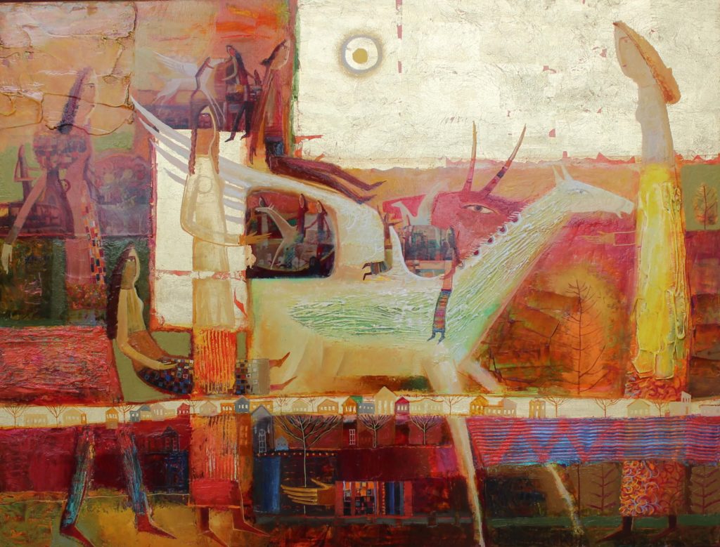 Твори Романа Опалинського, представлені на виставці в музеї, позначені експериментами з формою та ускладненою композицією, приваблюють метафоричністю і глибиною художніх трактувань, в них поєднується жива сучасність і спогади, реальність і її символічне осмислення. Основна тематика робіт – ключові моменти людського і природного існування: материнство, любов, одруження, єдність людини і природи. Персонажі митця мовби виринають з магми надр землі, завмирають в ритуальних позах. Цей погляд з часу у вічність надає їм особливої значимості.