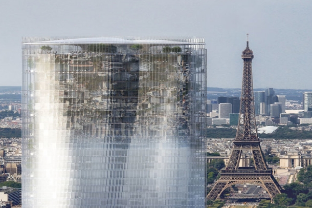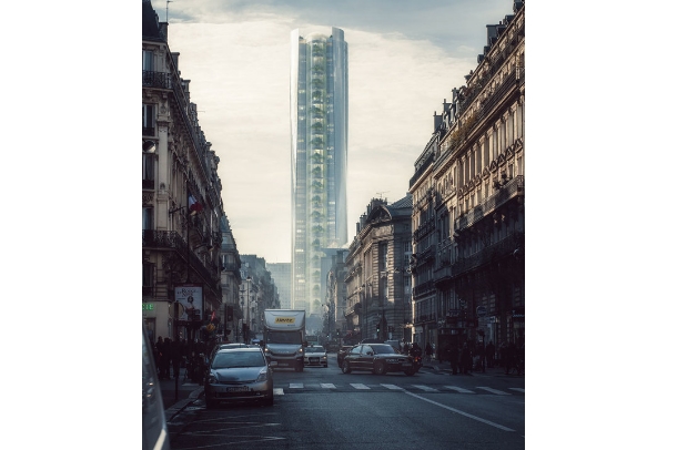 Предлагаемая архитекторами из MAD Architects конструкция создает оптическую иллюзию за счет того, что каждая стеклянная панель установлена под конкретным углом и башня выглядит как вогнутое городское зеркало. Небо отражается в нижней части здания, Эйфелева башня словно парит в воздухе, а крыши зданий и улицы будто перевернуты.