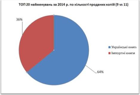 В 2015 году среди наиболее популярных книг была лишь одна импортная, 19 же остальных хитов оказались достижением отечественного книгоиздания. И это вопреки тому, что в прошлом году из 1230 издательств, чьи книги участвовали в продажах на Yakaboo.ua, украинских издательств было лишь около 300.