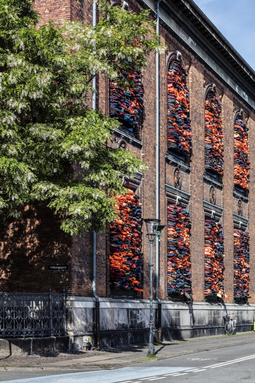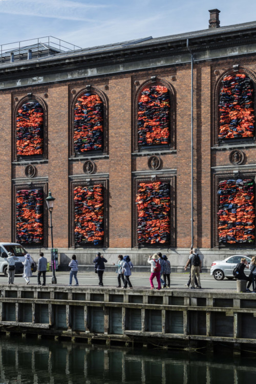 В качестве локации китайский представитель искусства выбрал фасад музея Kunsthal Charlottenborg в Копенгагене и не заметить ее невозможно! Окна институции заполнены спасательными жилетами беженцев. В своей работе художник акцентирует внимание на том, что за последние два года, о чем говорит статистика ООН, в Европу прибыло через море более 1 млн беженцев, из которых 8000 пропало без вести или погибло. И именно они находятся в центре работы Ай Вэйвэя.