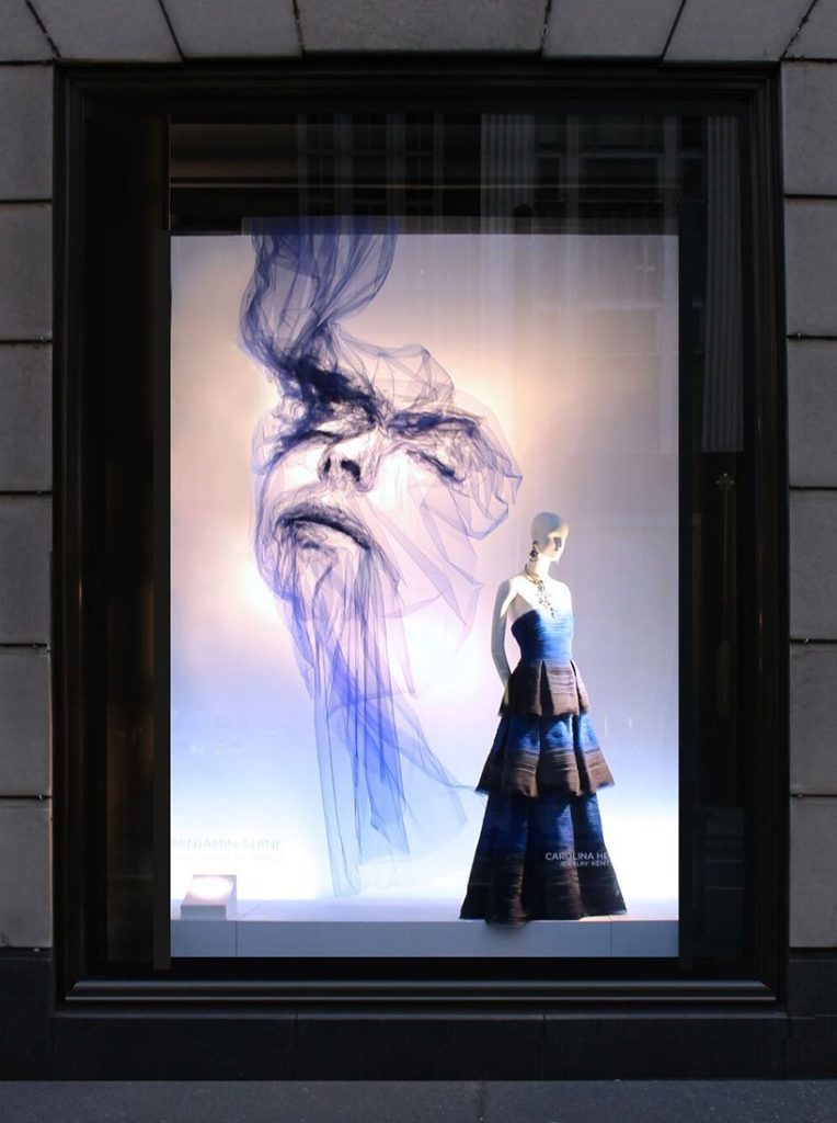 Когда оформление витрин – это смесь искусства, дизайна и творчества. Так, в витринах одного из самых известных универмагов в мире Bergdorf Goodman за стеклами видны женские портреты, которые выложены из…органзы! Это не просто декор. Это инсталляция британского художника Бенджамина Шайна и часть выставки Seeing Through the Material.