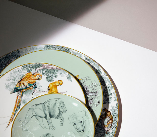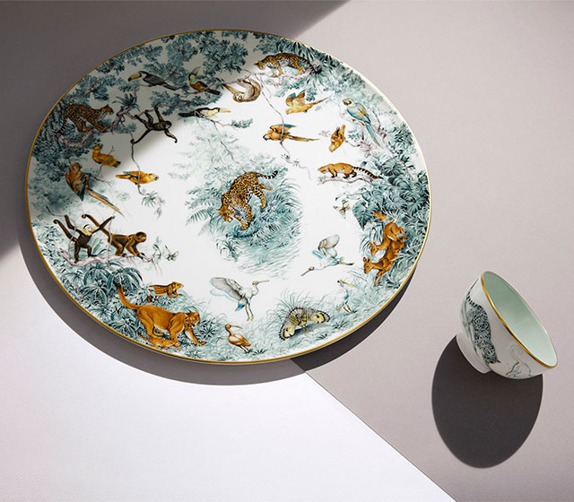 Помимо влияния в сфере моды и парфюмерии Hermès еще создает и люксовые предметы интерьера. На этот раз Дом моды выпустил коллекцию фарфоровой посуды с рисунками Роберта Даллета. Темой для коллекции послужили мотивы диких джунглей и экзотических животных.