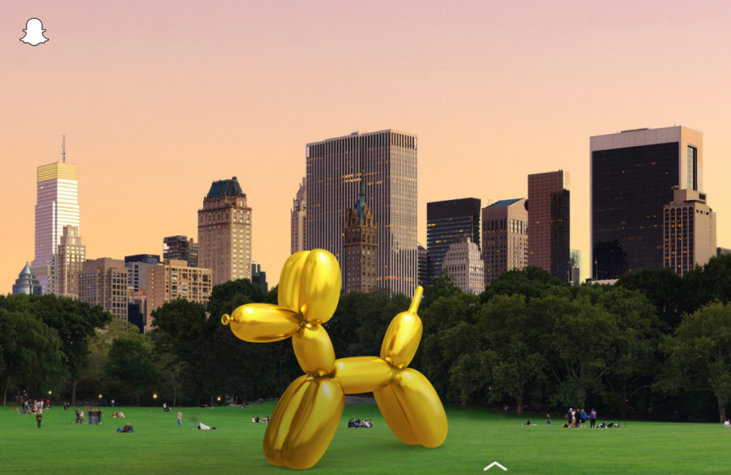 И вот спустя сутки на сайте появилось сообщение от команды Snapchat, что Джефф Кунс широко известен переосмыслением повседневных предметов. Так, из обычного воздушного шара он может сделать культовый арт-объект. Мужчина неоднократно превращал обычные предметы в монументальные блестящие скульптуры из стали, которые придают им новый вес и новый смысл. А вместе со Snapchat можно открыть digital-инсталляции  Кунса, которые будут разбросаны по всему миру, что позволит открыть их для себя и узнать намного больше. На сайте уже есть места по всему миру, где можно «словить» и «увидеть» работы Джеффа Кунса!