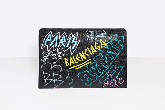 Стрит-арт уже настолько стал популярен, что без него едва ли можно представить не только мир искусства, но и любую творческую сферу. Так, на сайте бренда Balenciaga появились сумки Graffiti Collection. Данная коллекция состоит из кожаных изделий, которые выполнены из черной кожи и расписаны граффити, которые были популярны в 90-х годах.