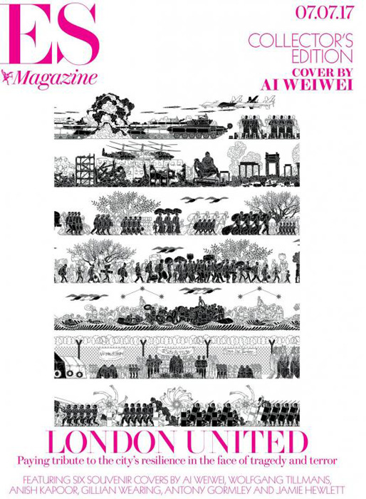 Шесть известных художников, среди которых Энтони Гормли, Вольфганг Тильманс, Аниш Капур, Ай Вэйвэй, Джейми Хьюлетт, Джиллиан Веринг, разработали дизайн обложки британского журнала Evening Standard. Выпуск будет посвящен годовщине лондонского теракта 2005-го года.