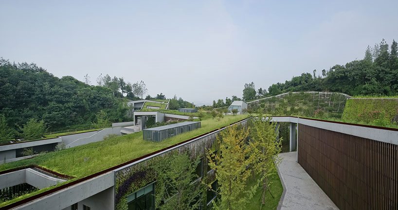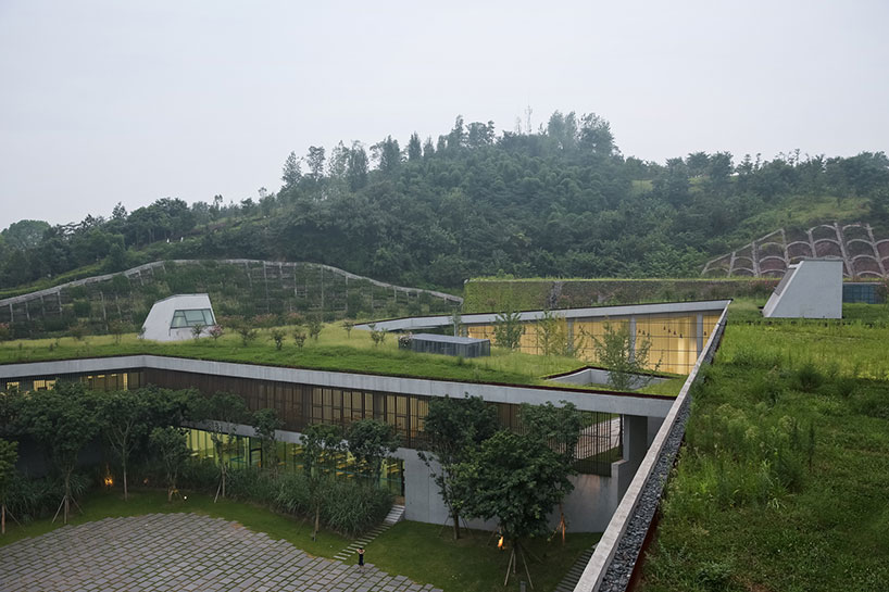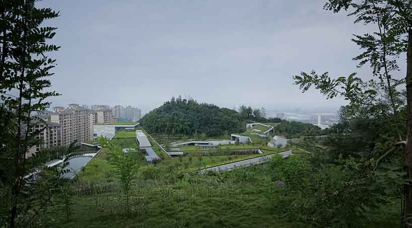 Очень часто при создании нового жилого комплекса, торгового центра или любого другого строения деревья и вся природа вокруг нещадно уничтожаются. А вот пекинская студия Vector architects, создавая проект общественного центра, решила избежать этого и сделала все так, словно здание является естественным продолжением ландшафта. Центр находится в парке Таоюань среди гор около города Чунцин. Он состоит из трех зданий: культурного центра, спортивного комплекса и центра общественного здравоохранения. У каждого из зданий есть центральный атриум, который пропускает естественный свет на нижние уровни.