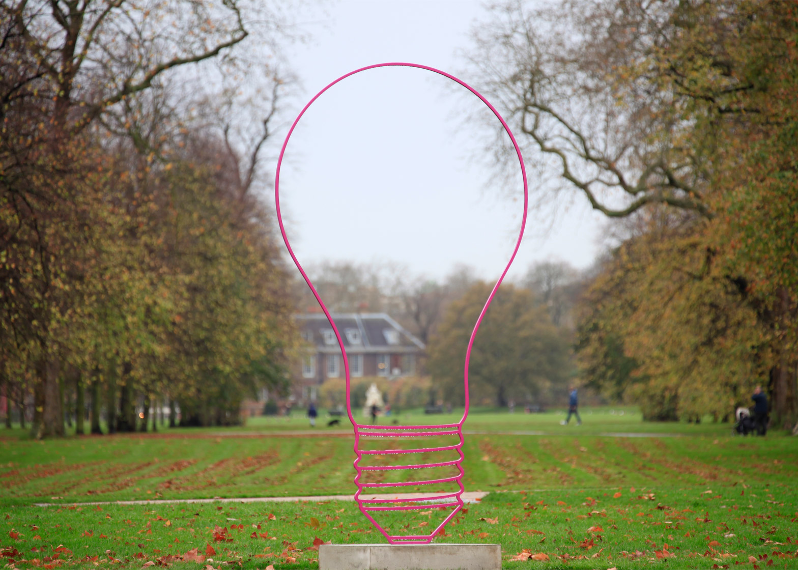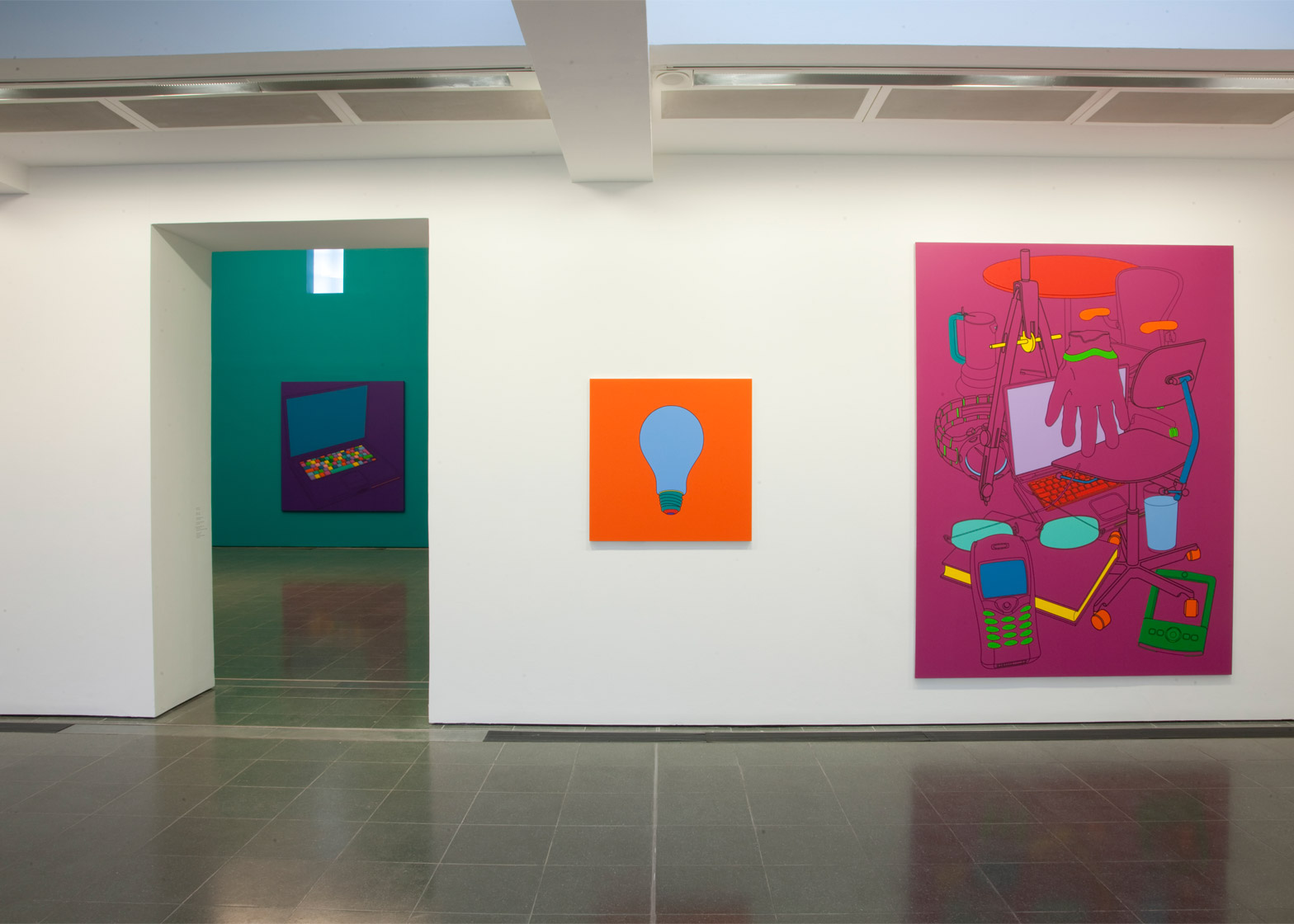 Скульптура в виде контура большой розовой лампочки, которая находится перед галереей, также была разработана художником и создана специально для этой выставки. «Больше всего меня поражает переход от аналогового века к цифровому, и некоторые вещи, которые я рисовал и которые меня окружали, сейчас для многих кажутся устаревшими и не актуальными. Когда я начинал работать, как я называю в «до-технологическое» время, я представлял черно-белый телевизор, магнитофон и кассеты, как вдруг в мире появилось такое «ускорение» и вот среди моих работ уже ноутбуки, смартфоны и карты памяти».