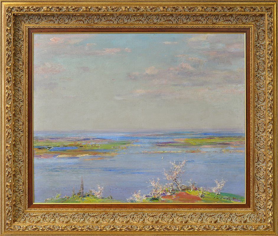 Сергей Шишко «Разлив Днепра», 1964 г. (эстимейт – $30000-40000), Иосиф Бокшай «Пейзаж с деревянной церковью», 1950-е гг. (эстимейт – $20000-25000), Надежда Компаниец-Киянченко «Чеховський пляж», 1953 г. (эстимейт – $5500-7500), Андрей Коцка «Зима в гуцульском селе», 1970-е ($5000-7000), Александр Хмельницкий «Художник и модель», 1990 г. ($4000 – 6000).