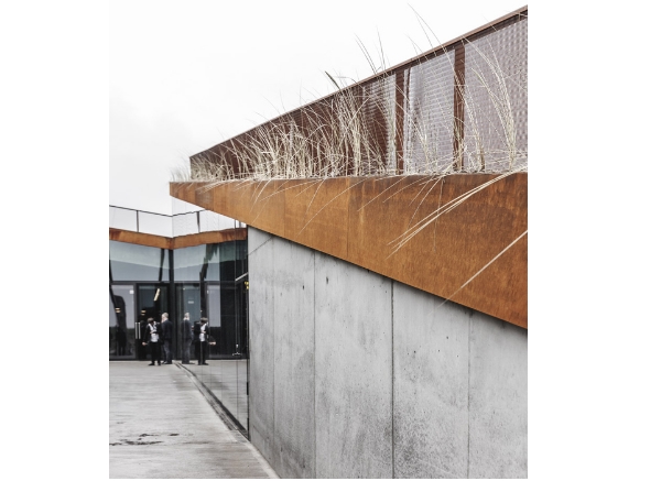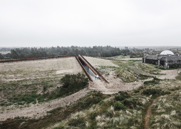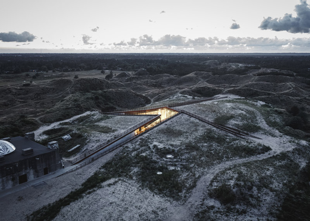 Интересно, что BIG превратили мрачный военный бункер в культурное пространство. Фишкой музея является то, что он практически невидимый, так как его пространство встроено в землю. Так что аудитория сначала заметит небольшое здание военного бункера и только после этого – прорези в земле, являющиеся стенами четырех выставочных пространств.