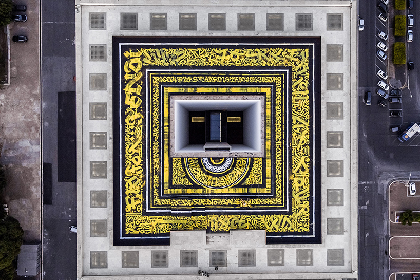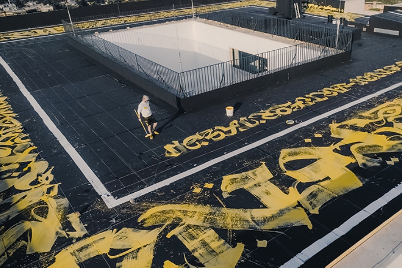 На этом бренд решил не прекращать сотрудничество с представителями мира искусства. Так, Fendi пригласили художника и каллиграфа Покраса Лампаса создать мурал. В результате на крыше офиса бренда, который находится в здании Дворца итальянской цивилизации в Риме, появились рисунки желтого цвета.