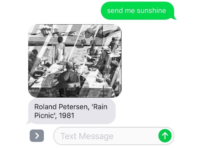 Так, если отправить запрос «send me something blue», то можно получить в ответ работу «Éponge (SE180)» Ива Кляйна. А, отправив сообщение с целью получить что-то с солнечным светом, пользователь получит ответ в виде картины «Rain Picnic» Роленда Петерсена.