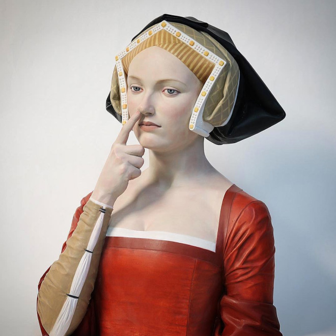 Художник из Испании Жерар Мас создает классические скульптуры из мрамора и полихромной смолы в стиле Ренессанса. При этом каждую из работ объединяет то, что им добавляют необычные современные элементы.