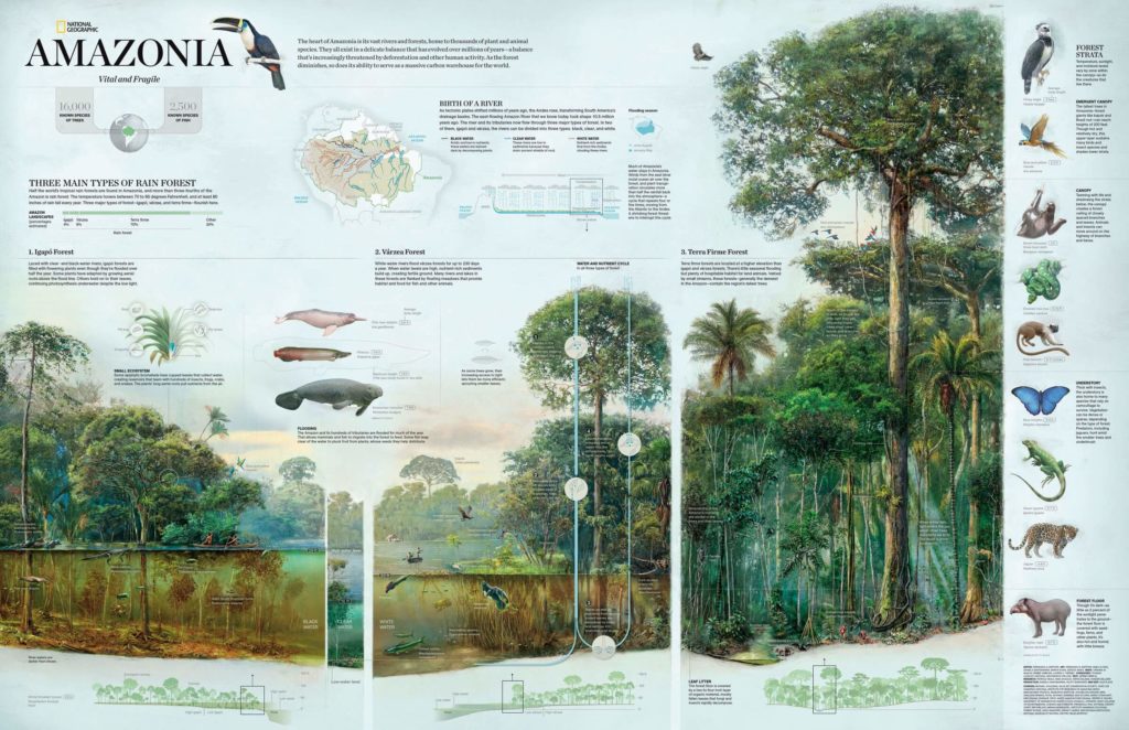 Редактор издательства Джулиус Видеманн отмечает, что в National Geographic активно использовали инфографику с первых лет существования журнала, так как на тот момент фотография была дорогим удовольствием, а оставлять материал без иллюстраций нельзя было: «Все началось с рисунков, затем издание начало публиковать большое количество карт, что позволяло рассказывать читателям об экспедициях». Однако в 40-х годах 20-го века ситуация изменилась, когда фотографии стали более доступными. Но в конце 20-го века и эта тенденция несколько изменилась. Начал расти спрос на дизайнеров, которые могли проиллюстрировать явления и процессы, которые с помощью фотографий нельзя было передать.