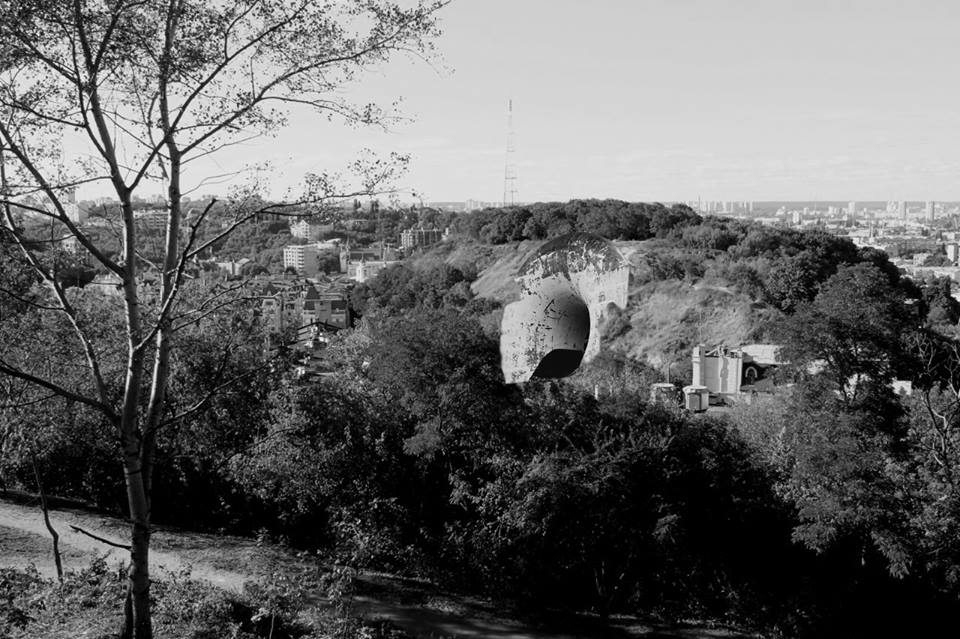 Больше узнать о том как глобальные общественные изменения связаны с цифровым миром, можно из работ Юрия Свирина. В коллаборации со скульптором Виталием Маковеем, Сивирин сделал серию объектов, напечатанных на 3D-принтере. Визуальным материалом для инсталляций послужил популярный контент из сети – фильмы, интернет-легенды, псевдонаучные истории. Всевозможные сценарии событий разворачиваются на киевских ландшафтах. Художники представляют как будет выглядеть киевский велотрек, если в него врежется субмарина, или визуализируют искажение пространства-времени в районе Лыбидской.