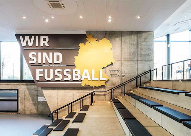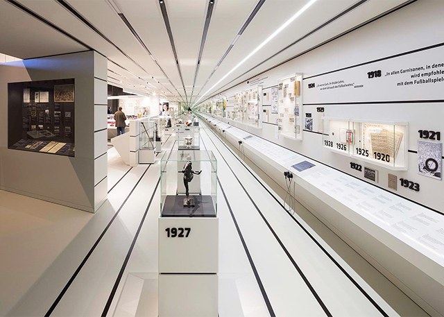 Музей футбола находится напротив главного железнодорожного вокзала и явно рассчитан не только на ценителей этого вида спорта, но и на туристов, которые не смогут не заметить его, приехав в город на поезде. Строительство музея обошлось в 40 миллионов евро, большая часть из которых была выделена властями региона, а 8 миллионов были предоставлены немецкой Федерацией футбола. По подсчетам специалистов для того, чтобы музей был прибыльным, каждый год его должны посещать в среднем 270 000 болельщиков. Помимо постоянной экспозиции музея в виде истории клубов и различных наград, дизайн выставочных залов представляет собой предмет отдельного интереса.