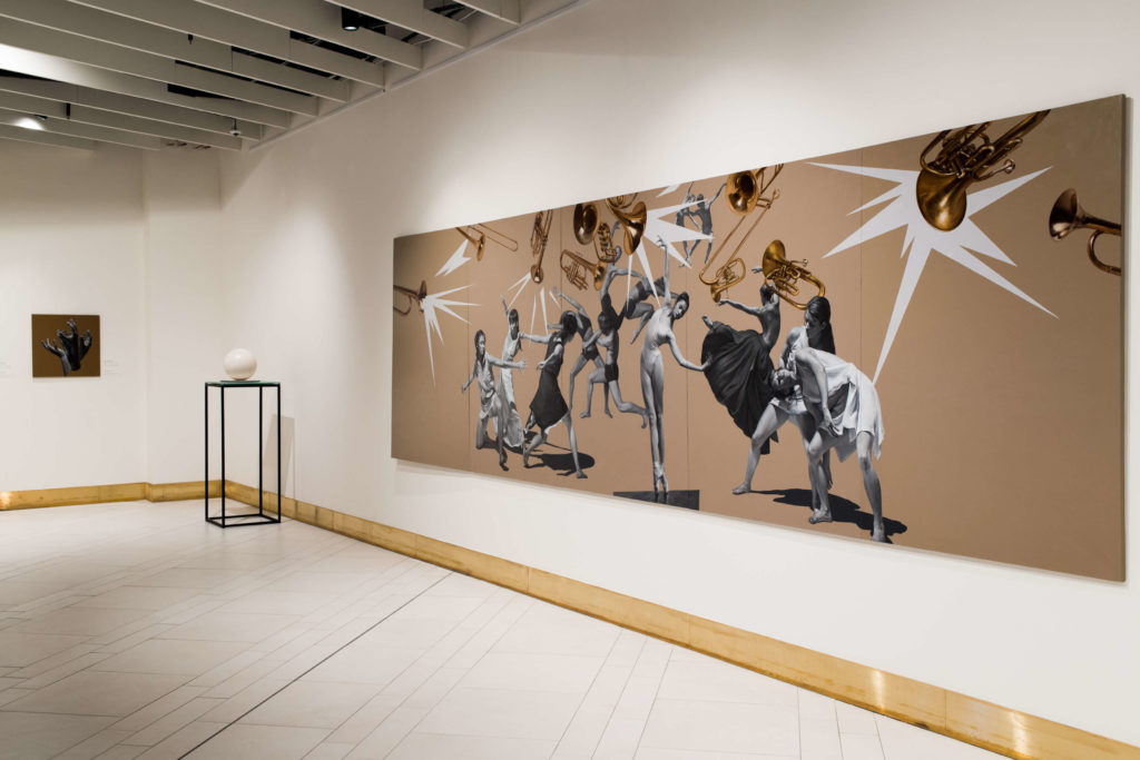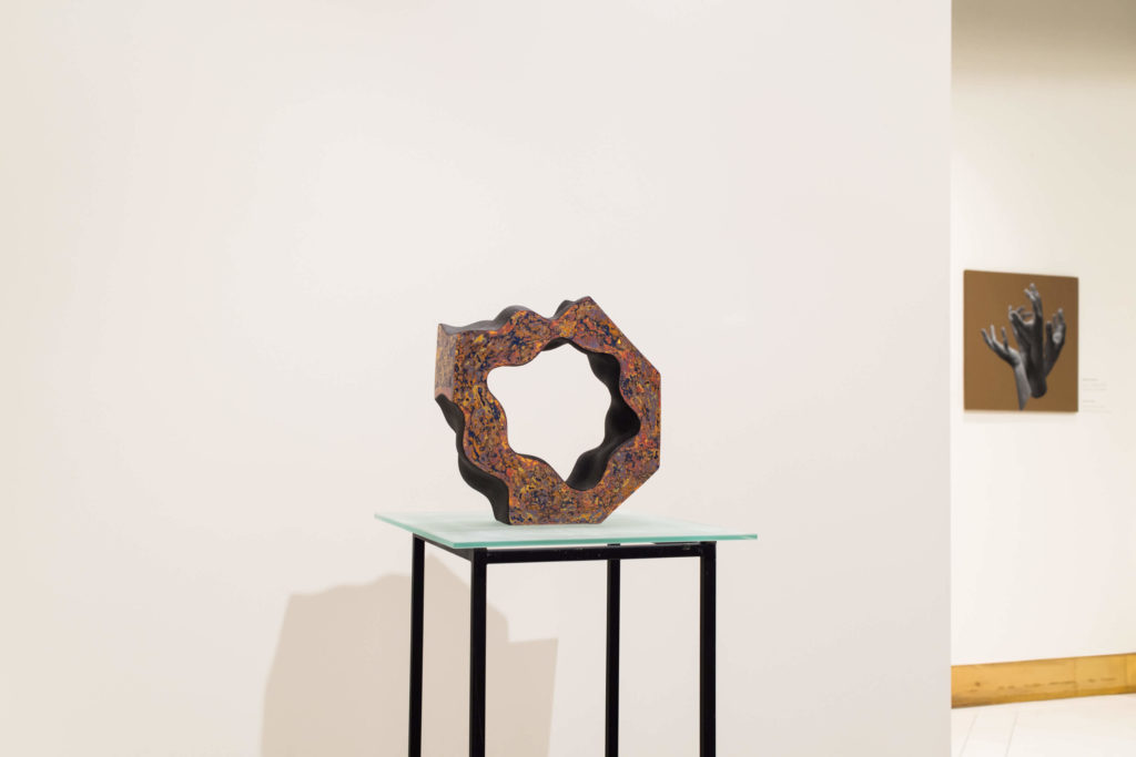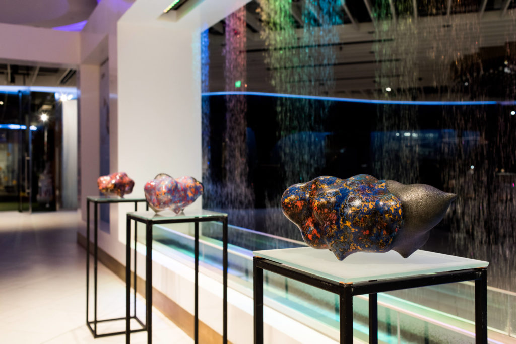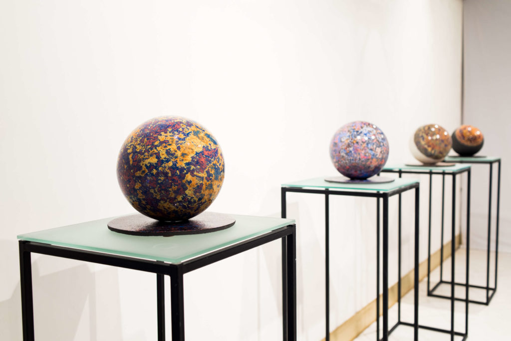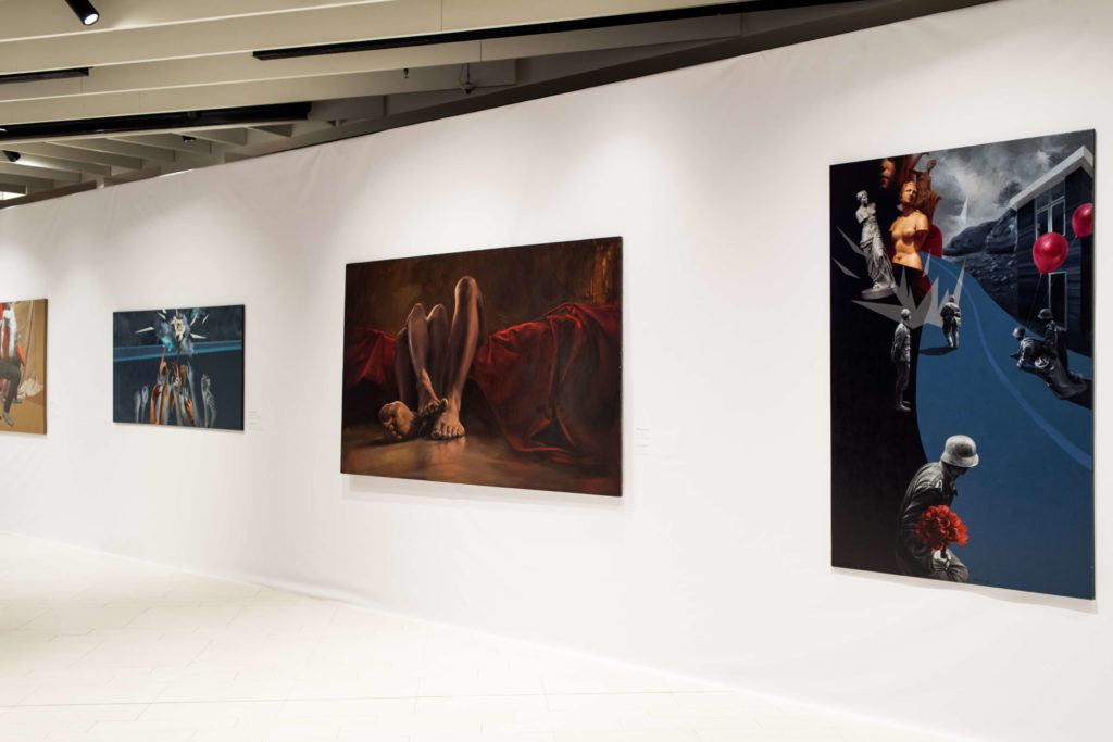 На экспозиции представлены работы четырех известных авторов разных направлений творчества – Юрия Коваля (живопись), Юрия Мусатова (коллекционная керамика), Александра Корбана и Андрея Калькова (оба – стрит-арт).