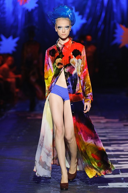 Алексей Залевский, всегда расшатывающий дремлющие умы мира моды своей эпатажностью, на показе Ukrainian Fashion Week остался верен себе. Впрочем, сегодня его провокационная театральность преобразилась в мягкую сказочность, а силуэты приобрели некую лаконичность с оригинальными вкраплениями: необычные принты, цветовые контрасты и, конечно же, элементы то ли прошлого, то ли будущего – синие пластиковые бороды и такие же прически-шляпы.